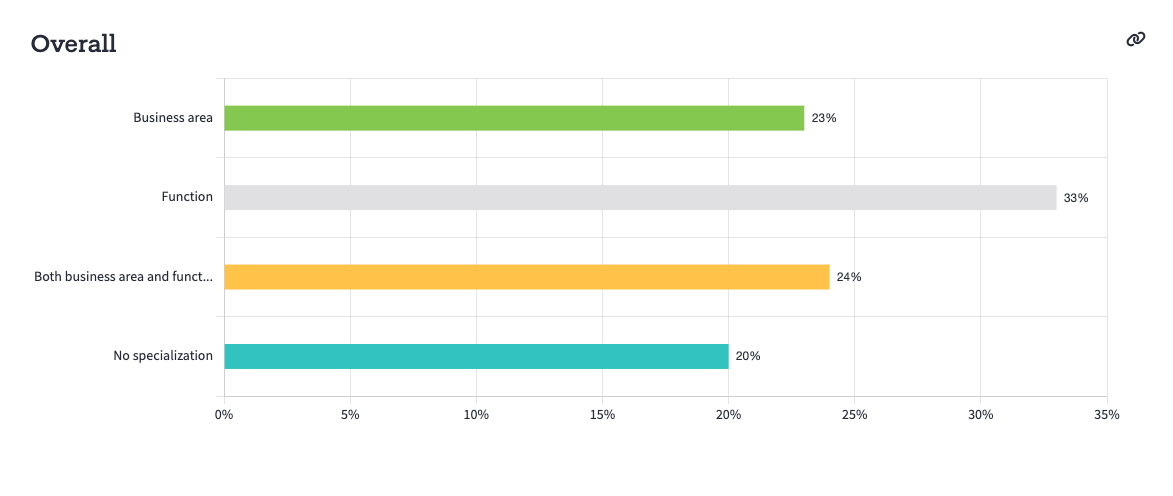 First interesting insight is about the distributing of responsibilities within the data team. From the answers it’s clear that data engineers are usually involved as cross-functional specialists (e.g. they are not dependant on the business area), while analytics engineers tend to work closely with some business units. Sounds like a truth, at least at my job we have the same distribution.